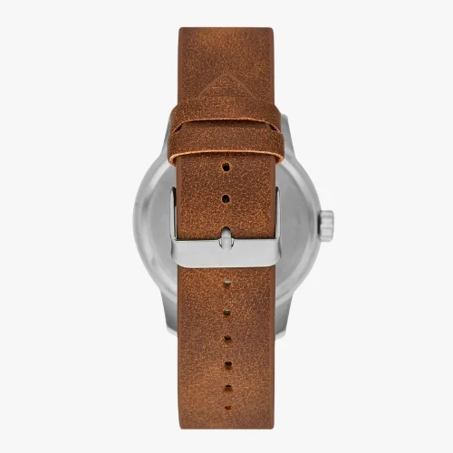 - Strap: Brown leather strap