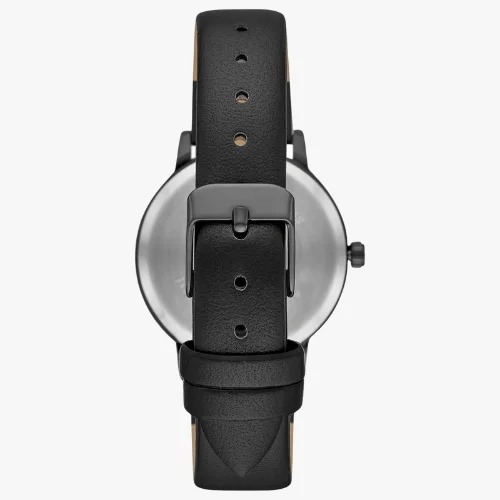 This women’s analog watch features a sleek black leather strap paired with a matching black dial for a modern and elegant look. The stainless steel case adds durability, while the quartz movement provides accurate and reliable timekeeping. A versatile design that complements both everyday wear and formal outfits.