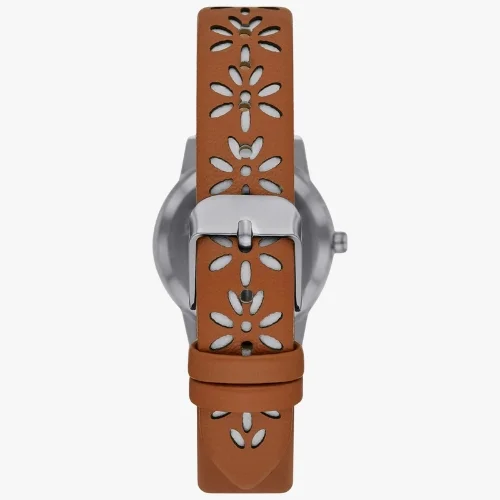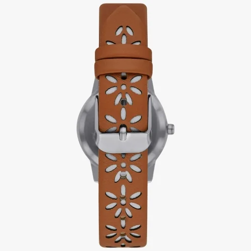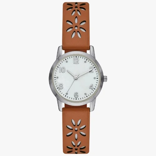 Womens Analog Watch-Brown Leather Strap With Silver Dial