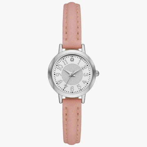 Womens Analog Watch-Pink Leather Strap With Silver Dial
